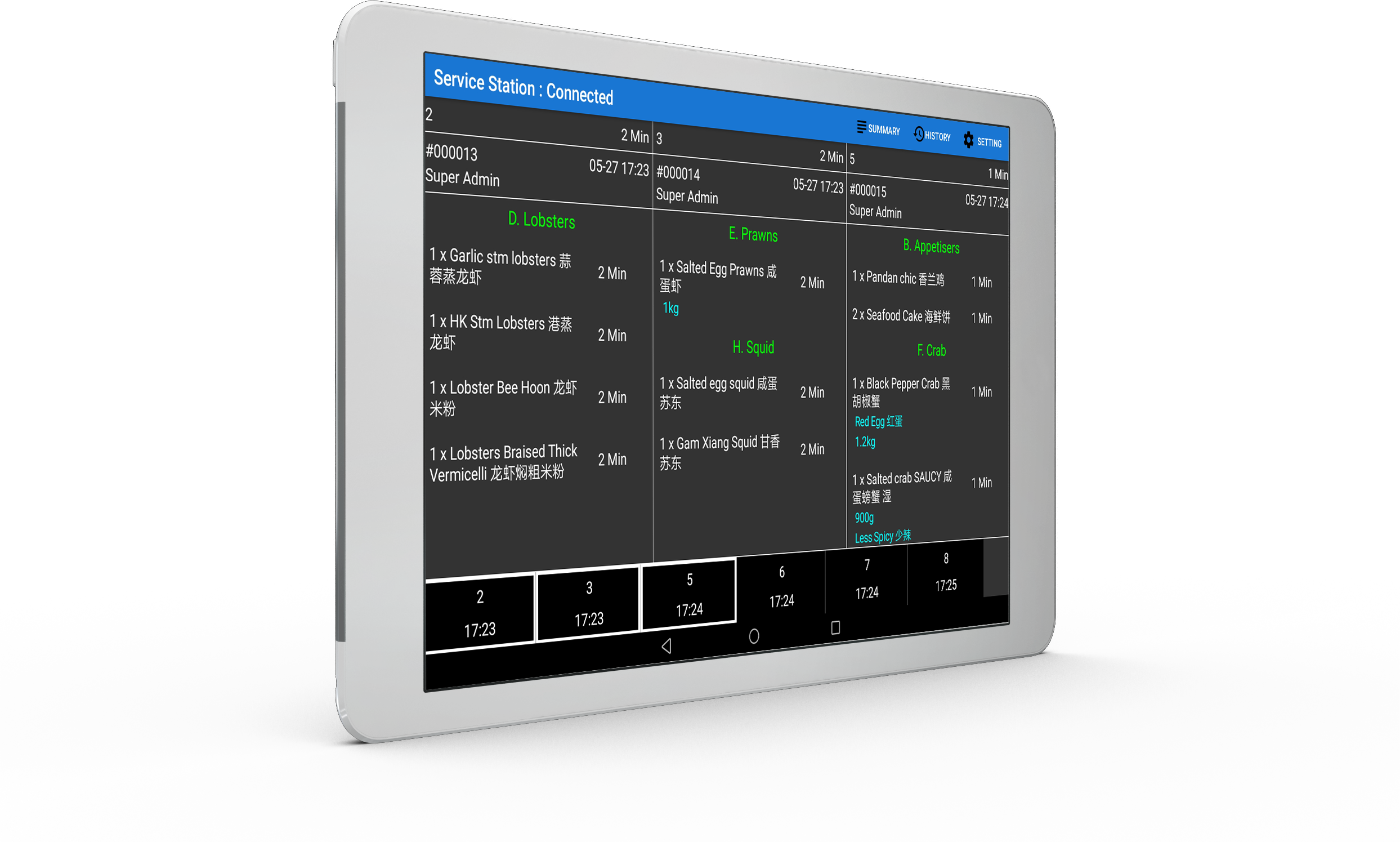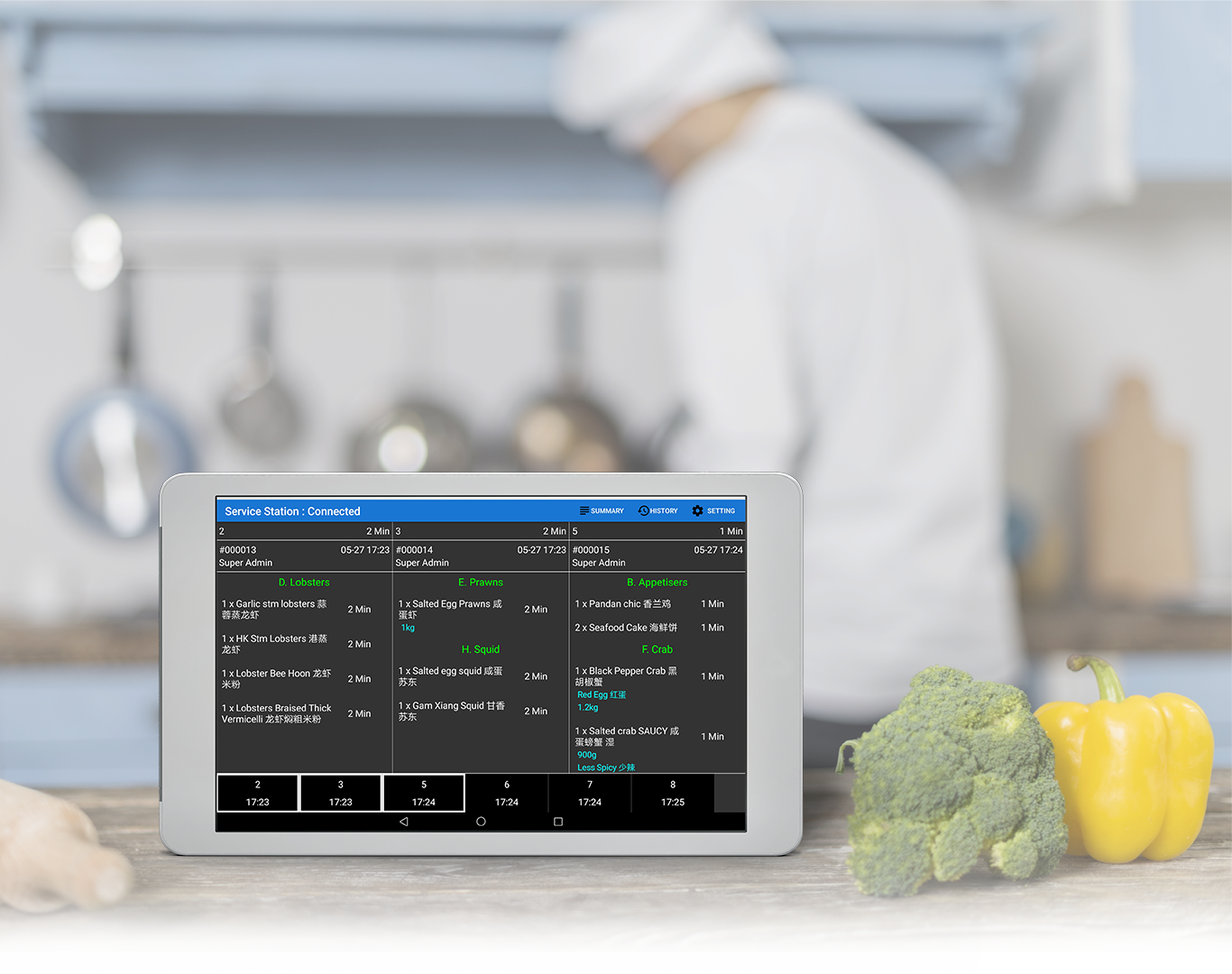 Clear the clutter of kitchen printouts with individual KDS per station in the kitchen that has colour codes tracking time lapsed since order.