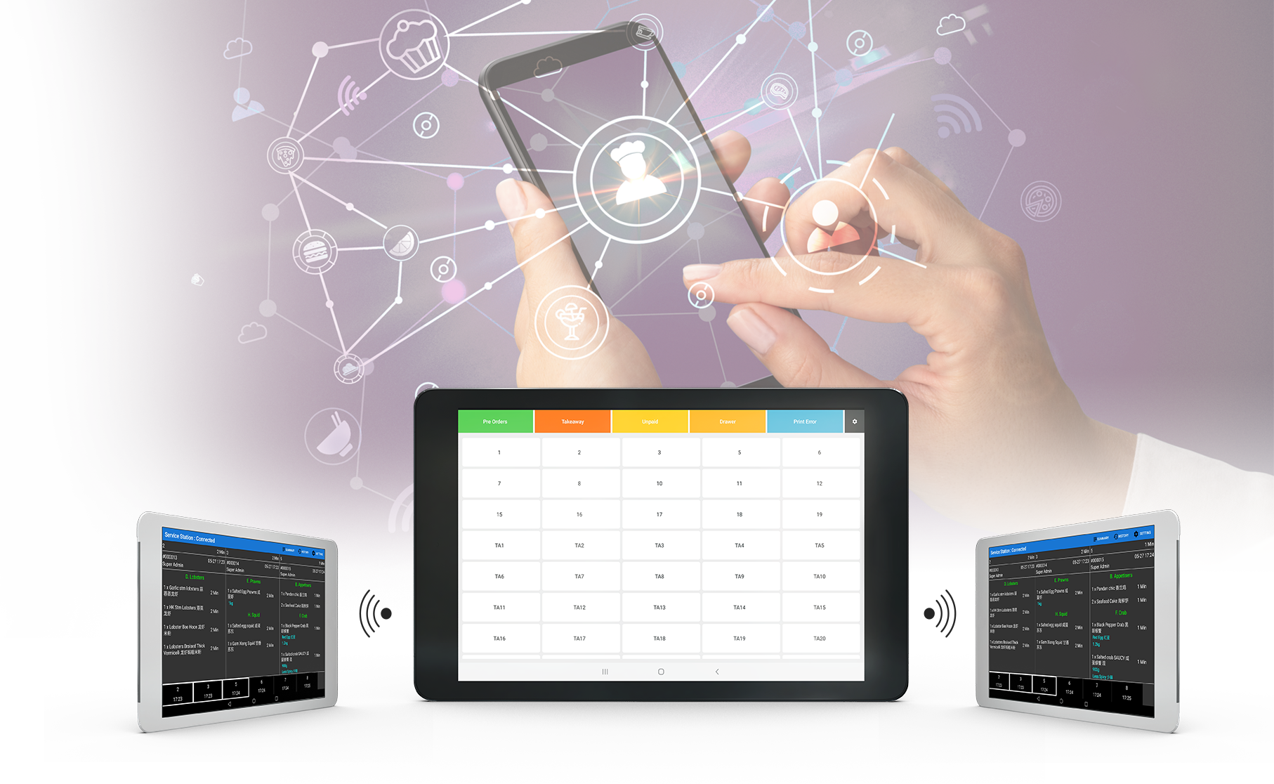 Orders are sent wirelessly to the kitchen and automatically assigned to the relevant stations for seamless and error-free order processing.